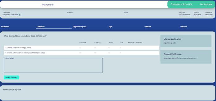 Here you can see what competencies have been completed and if they have been assessed, verified and signed off.