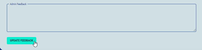 To do this type in your feedback in the ‘Admin feedback’ box and click the ‘Update Feedback’ button