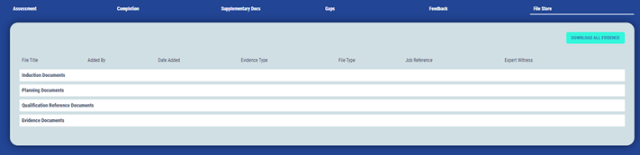 Here you can download all docs by clicking the ‘Download All Evidence’ button or view all evidence by clicking the ‘View Evidence Matrix’ button