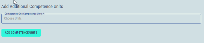 To add a competence assessment, click in the ‘Competence Assessment Competence Units’ box and find the one you want, then click on the ‘Add Competence Units’