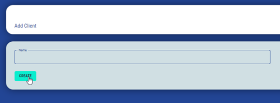 Once you have clicked on the ‘Add Client’ button as above, you will see this screen below. Simply enter the name of the client in the ‘Name’ field and click on the ‘Create’ button.
