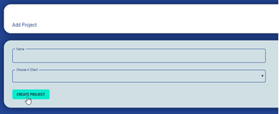 Once you have clicked on the ‘Add Project’ button above you will see this screen below, simply enter the name of the project in the ‘Name’ field, then choose the appropriate client from the ‘Choose A Client’ drop down box and click on the ‘Create Project’ button.