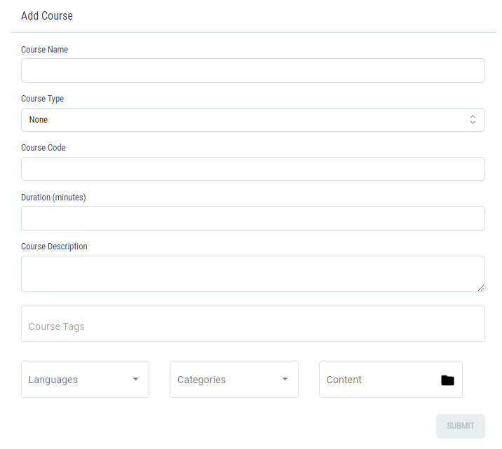 Once all of the information as been input, select ‘Submit’. The LMS will then process the course and make available within the system.