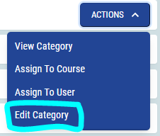 You can do this from the ‘Category’ page and selecting ‘Edit Category’ from the action drop down. Or, you can do this from the view category page and selecting the pencil icon.