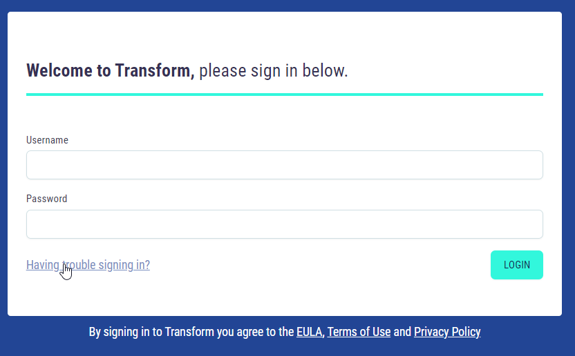 Once you have created a new password, you can log into the Transform LMS with the link below, using your new email and password.