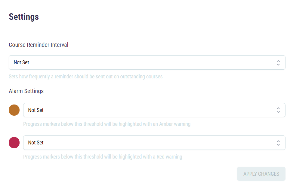 This sets how frequently a reminder should be sent out on outstanding courses. You can select from the following options: