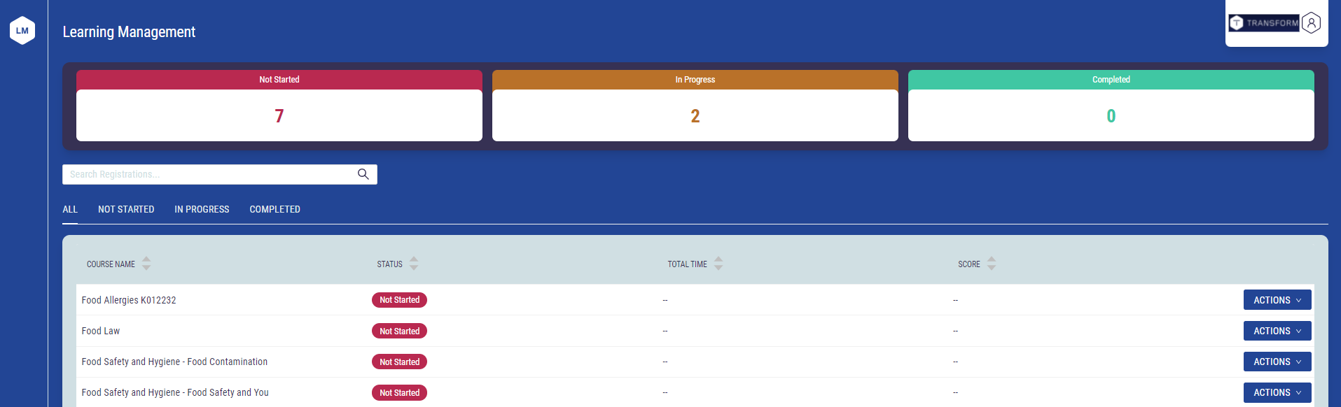 The first screen you will see once you open the Learning Management System is the dashboard, this will show you the following: