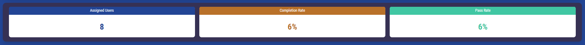 Completion Rate | Shows the percentage of registered courses users have completed |