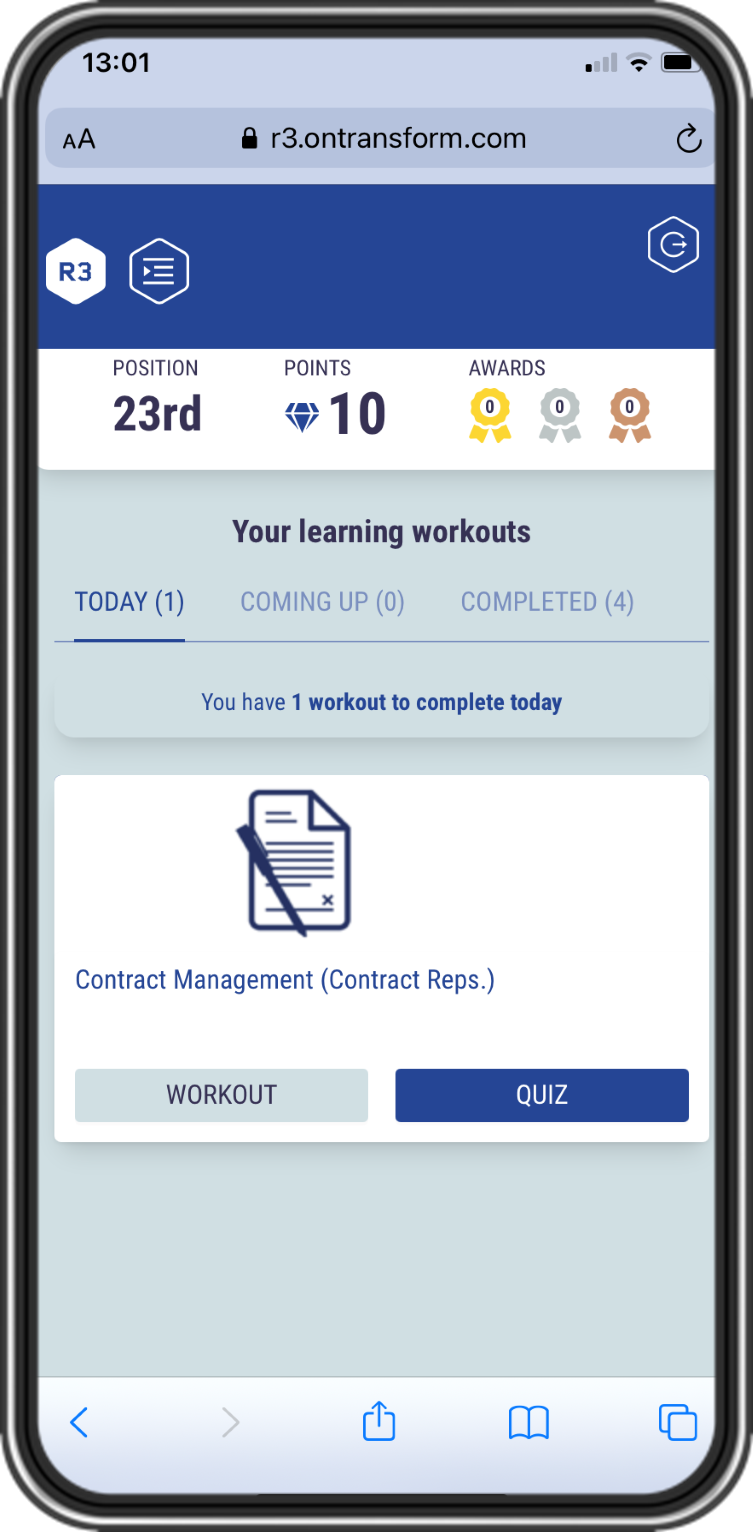 Welcome to the User Guide for our cutting-edge R3 micro learning platform! This guide is your go-to resource for mastering the dynamic learning experience offered by R3. Dive in to discover how to leverage the power of spaced repetition learning, navigate through bite-sized workouts and quizzes effortlessly, and maximize your engagement and knowledge retention. Let's embark on this learning journey together!