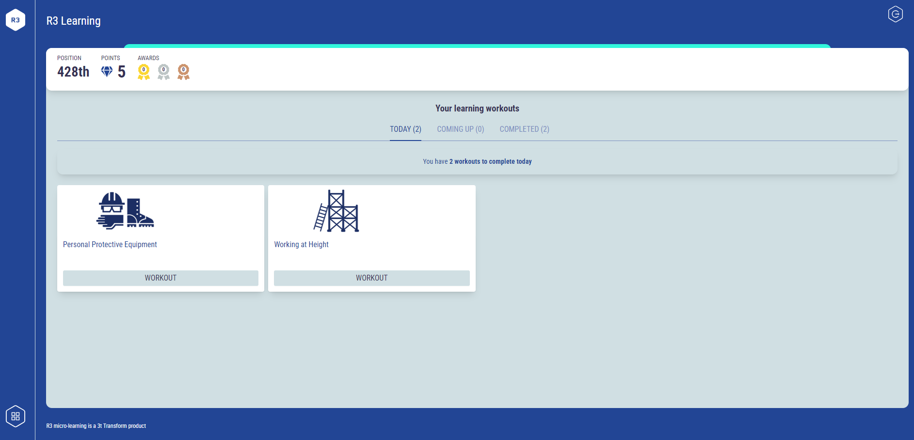 Welcome to the Employee User Guide for our dynamic R3 micro learning platform! This guide is your gateway to a personalized learning experience tailored to elevate your knowledge and skills. Here, you'll discover how to engage with bite-sized workouts, quizzes, and targeted content designed to enhance your understanding and retention. Let's dive in and embark on a learning journey that's tailored just for you.