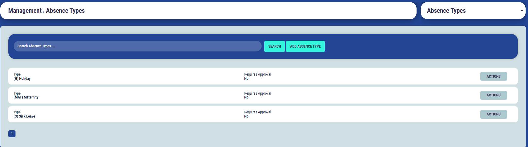 Within the Absence Types section you can add and manage the different types of Absence for you delegates