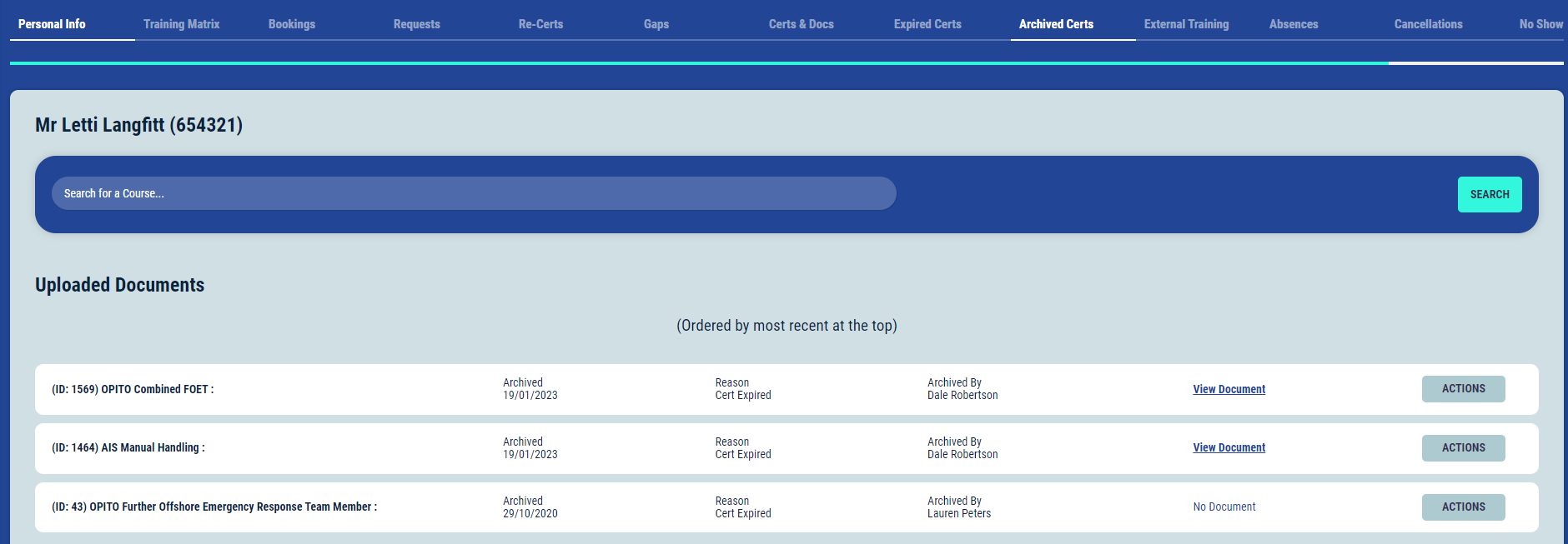 From here you will be able to see the Archived Date and Reason for Archive of the certificate, you will be able to select view document and will open the certificate.