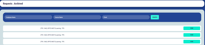To streamline your search, you can input an employee's name or course name in the respective field and then click the ‘Search’ button. Additionally, you can view an archived request by clicking the ‘View’ button.