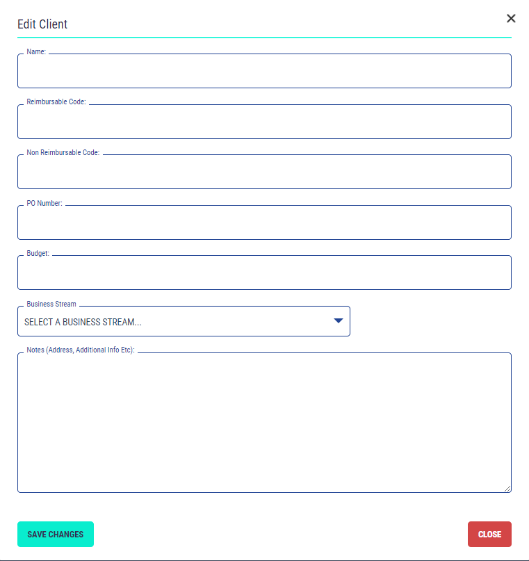 To add a client select the ‘Add Client’ button and complete the fields in the form that appear. Select the ‘Save Changes' button to create the client.
