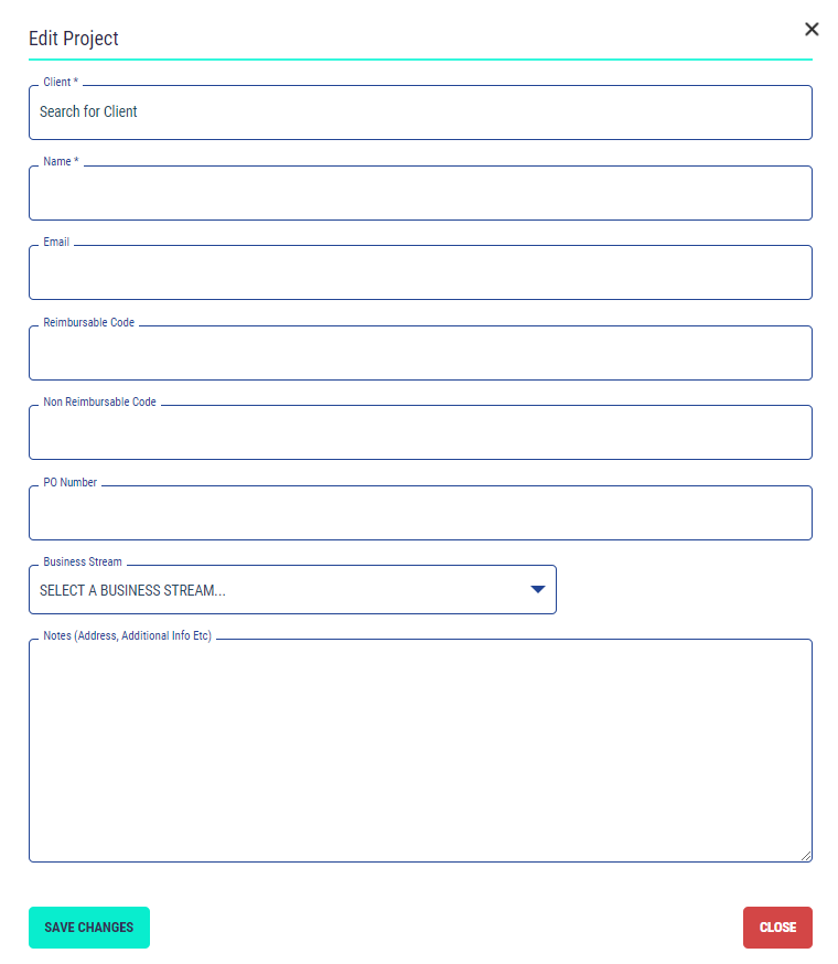 To add a project select the ‘Add Project' button and complete the fields in the form that appear. Select the ‘Save Changes' button to create the client.