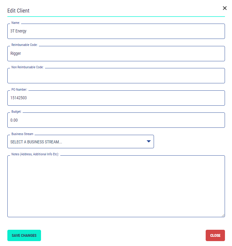 Please Note: Editing a current Client/Project information will update the details against all information in the system where the client/project details are stored i.e. delegates job roles and matrix where this client/project is assigned.