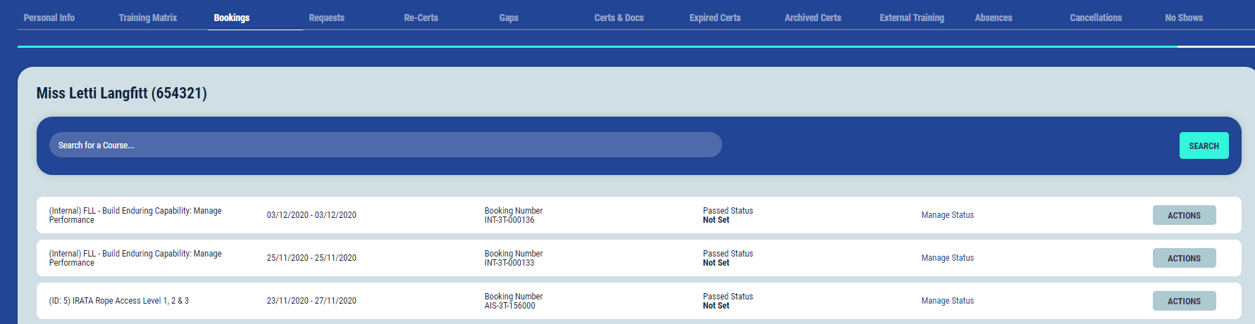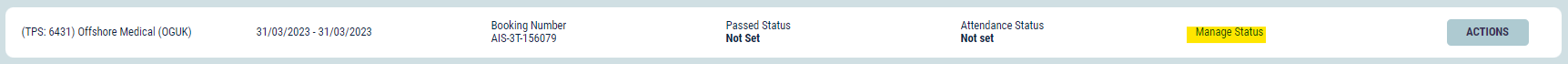 Selecting “Manage Status” against the booking will allow you to update the status of that specific booking