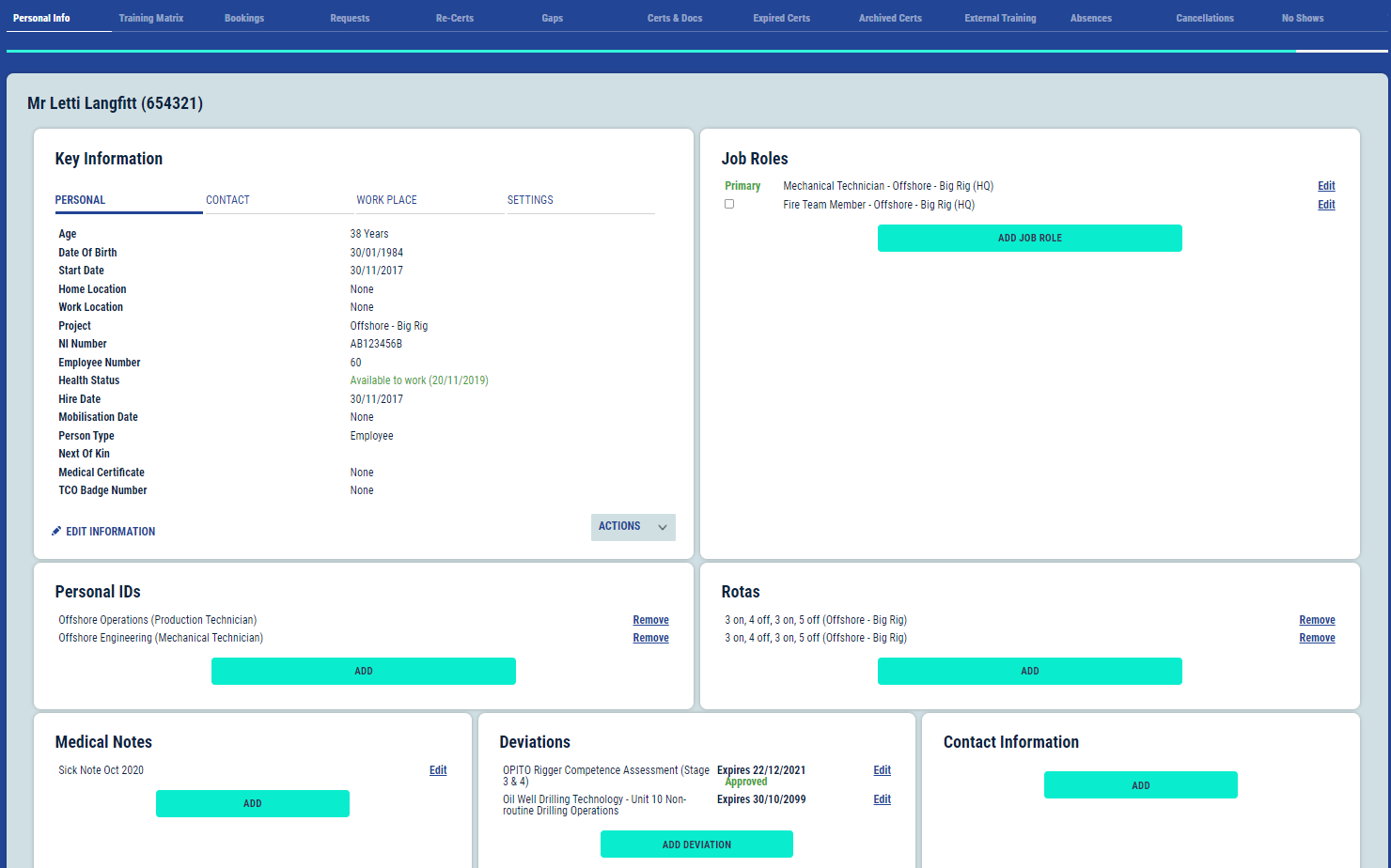 When you view the delegates profile your default page will show the Personal Info tab as shown in the screenshot below
