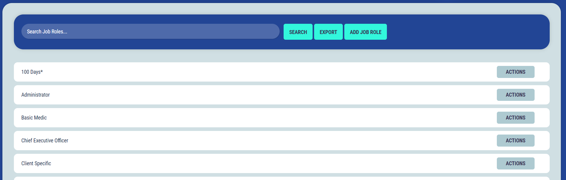 This option will show you how to add and manage Job Role names for your company, from here you will see a full list of Job Roles that have been created.