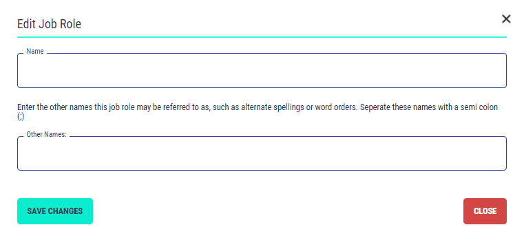 To add a new Job Role, select the ‘Add Job Role' and enter the name of the job role and select ‘Save Changes'. The job role will now appear within the list and be available to assign to delegates and create matrix.
