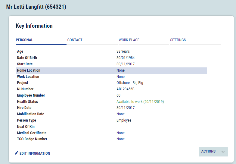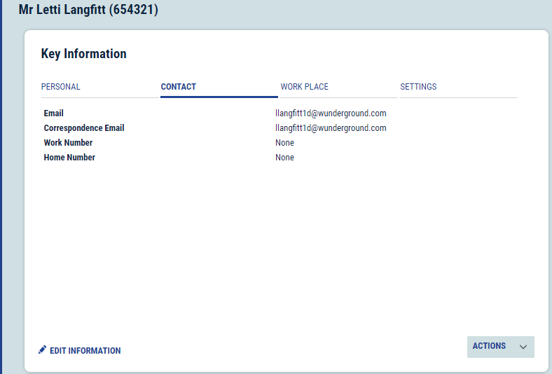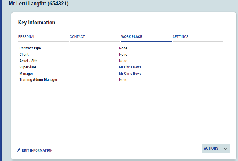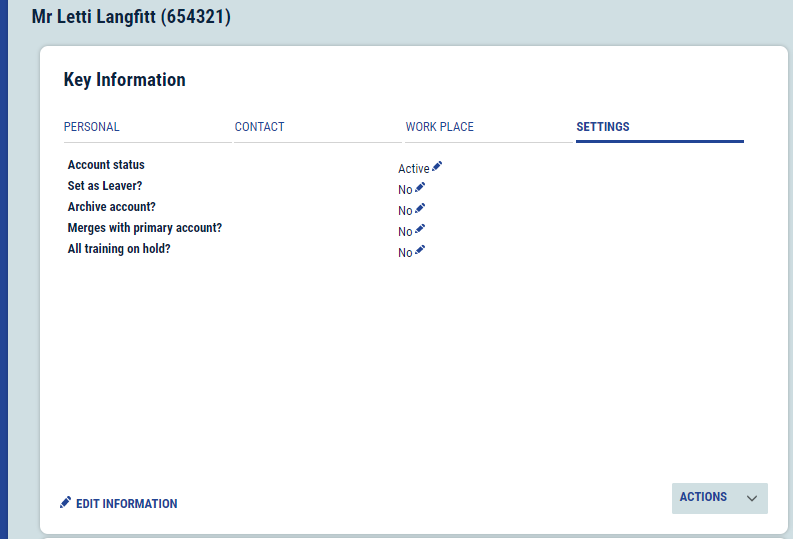 The Key Information tile has been separated into different tabs, Personal, Contact, Work Place and Settings. You are able to manage what Training Admin Users have access to view certain information and hide any other personal information they do not need to view.