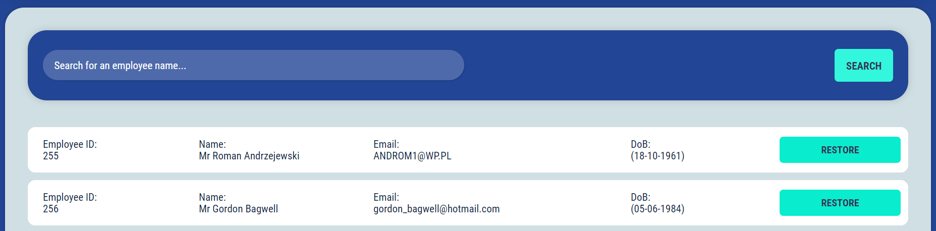 This section you can see any employees that have been merged and can restore the separate accounts that were merged together.