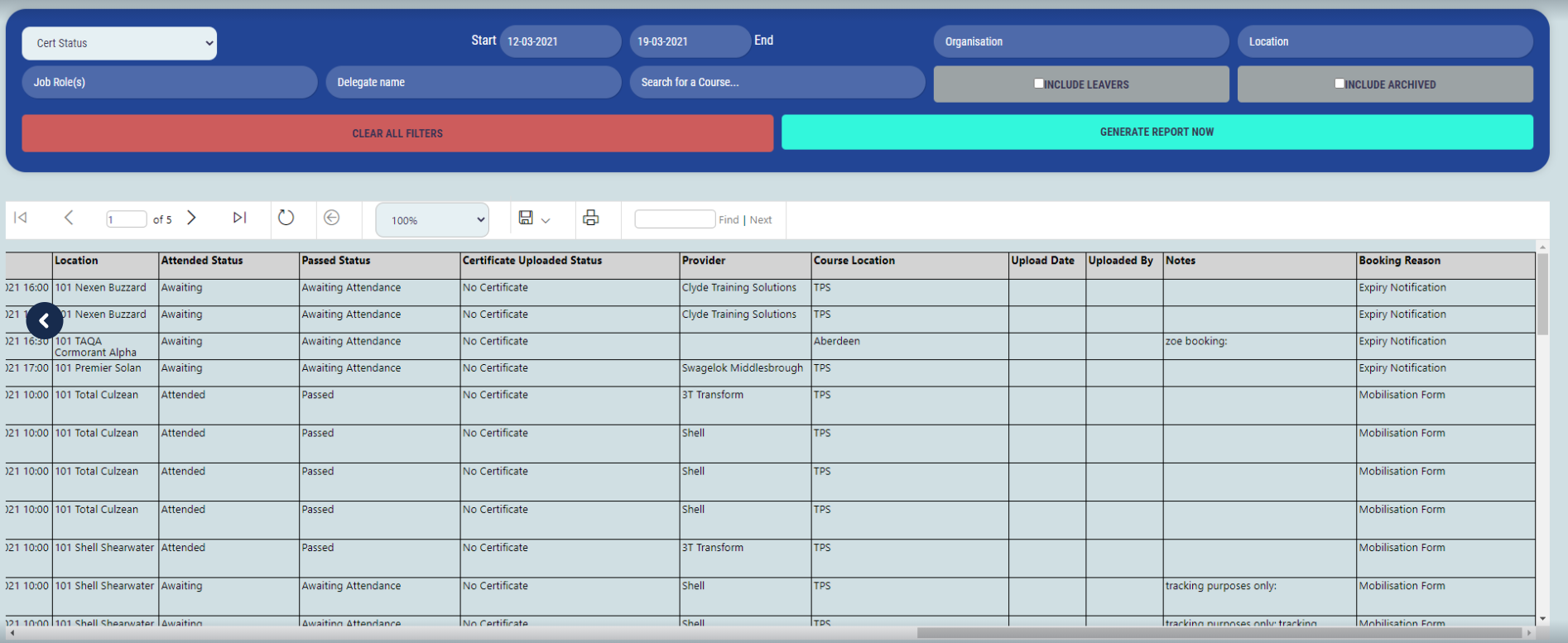 The ‘Cert Status’ report now shows the ‘Booking Reason’ in the last column