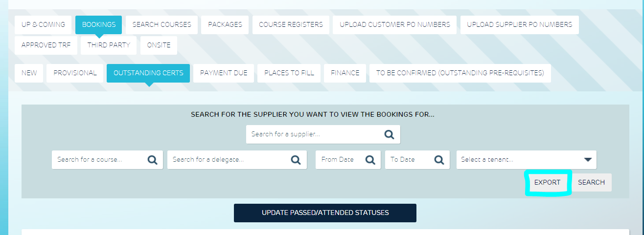 You can now export the Outstanding Certificate Report from the AIS Booking System.