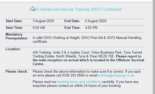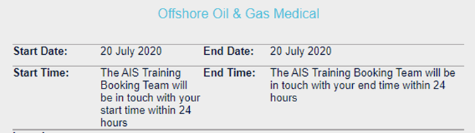 Instead it now states ‘ The AIS training booking team will be in touch with your start time within 24 hours’