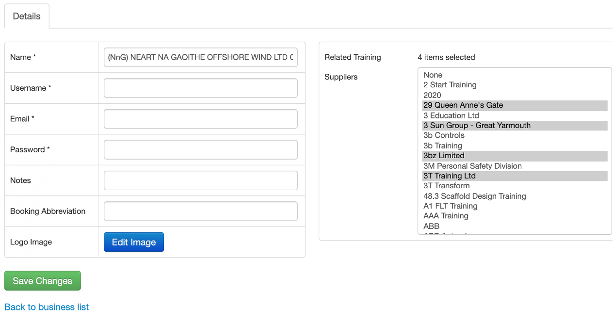 Admin users now have the ability of assigning multiple suppliers to a business account. This means that when users are logging into the Business Portal, they will be able to view all items on the Outstanding Certs report for all of their training centres. |