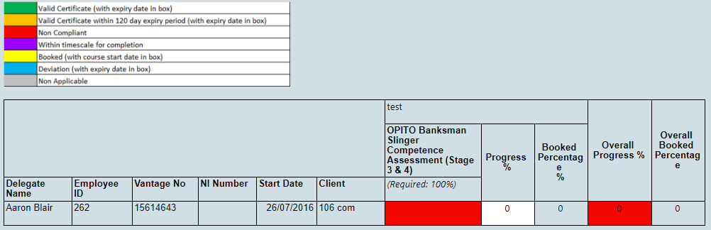 The ‘Matrix Progress Compliance (with overview)’ report now includes a colour key to show what the colours represent on the report. |