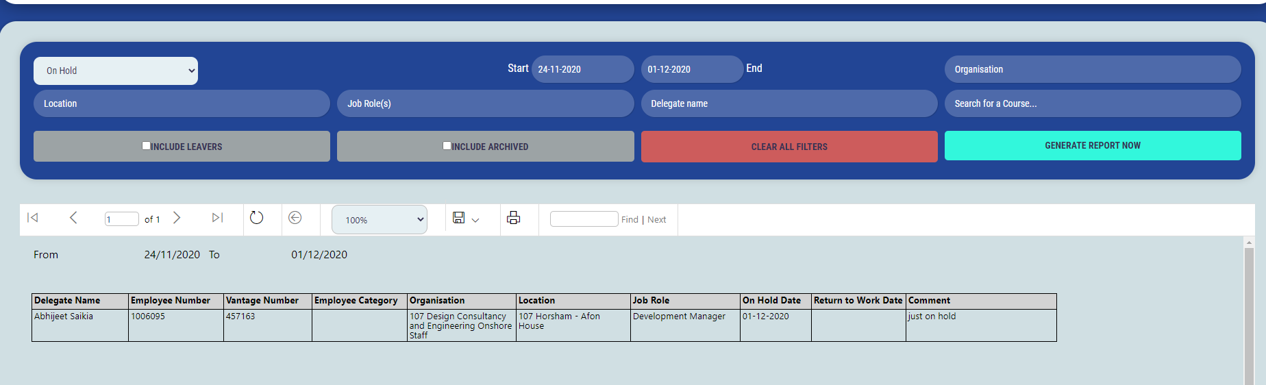 A new report has been added to show which employee’s training are on hold that called ‘On Hold’. The report includes the following information: