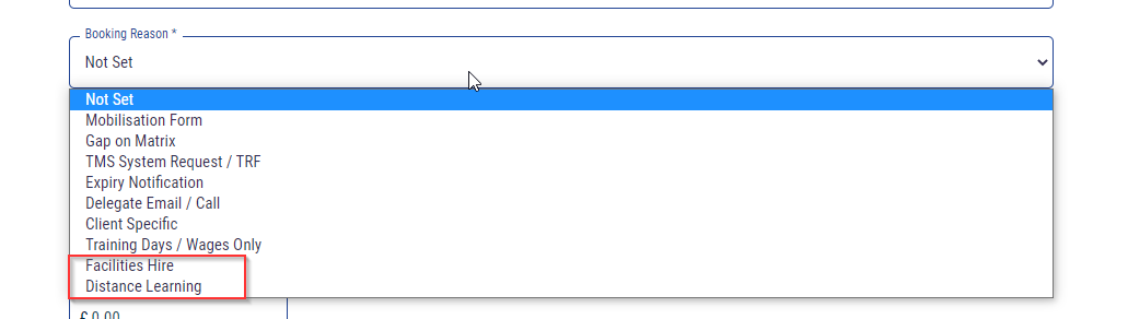 There are now additional options when selecting booking reasons from the booking reason dropdown: