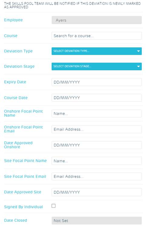 Enhancements have been made to the deviations; the form has been updated with mandatory fields.