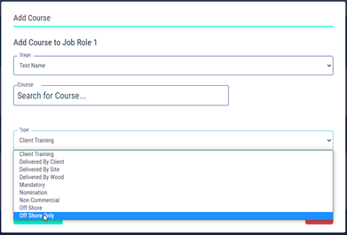 The ability to now select a Type has been added when adding a course to a matrix in WG. The CSV Template is available in the Admin Section.