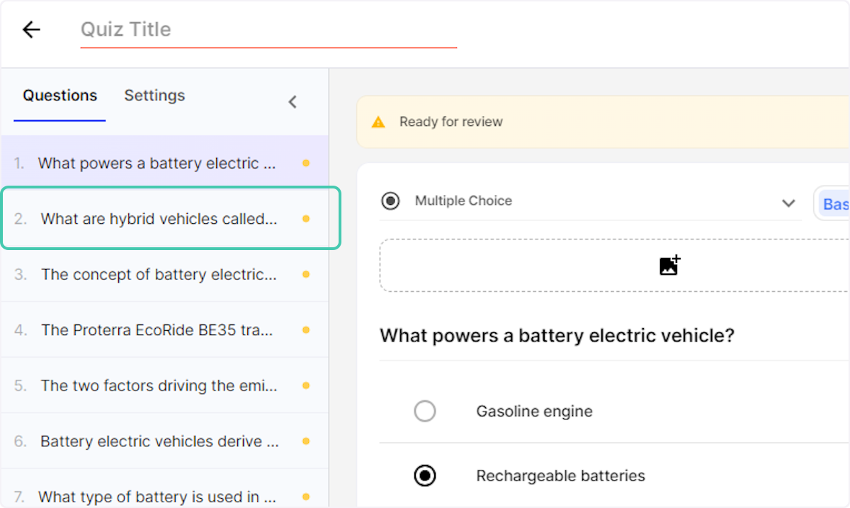 13. Once the AI has generated these questions they will be "Ready for Review"